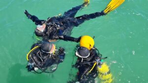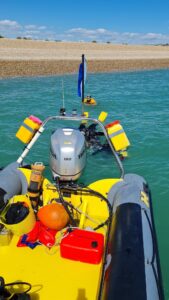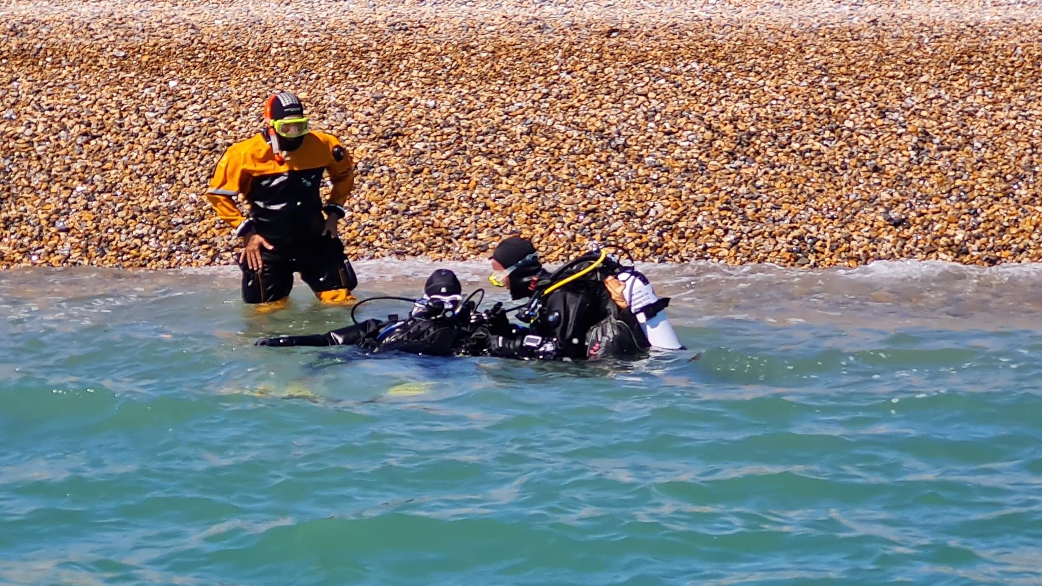 Diver Rescue training. In between dives some of our members practiced some Diver Rescue Training at Seaford beach. Beach!